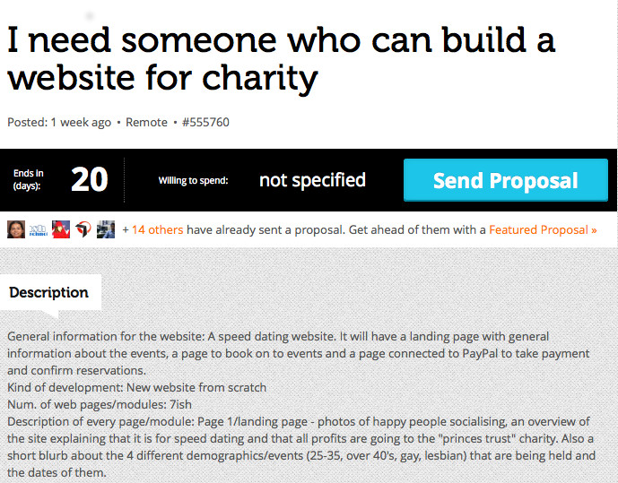 This weeks job of the week is for a charity site . The buyer is after someone who can from scratch create a dating website for free.